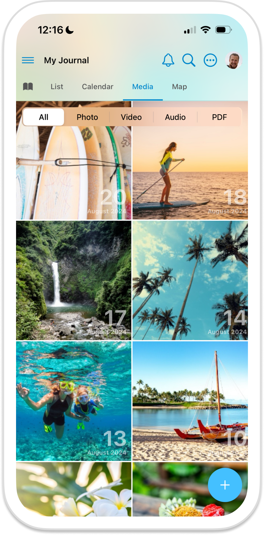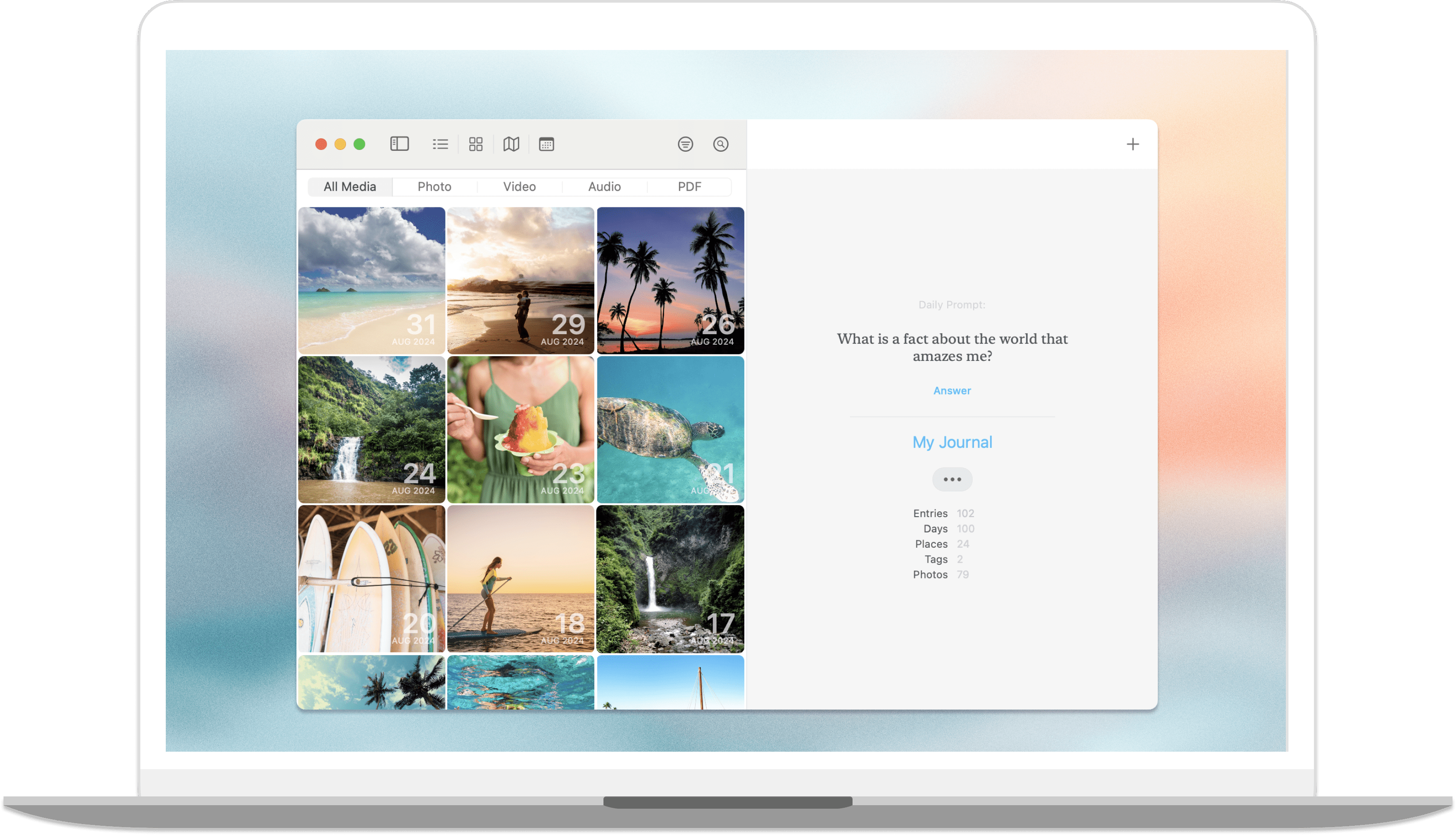 Add photos, videos, drawings, or audio recordings to bring your journal entries to life.