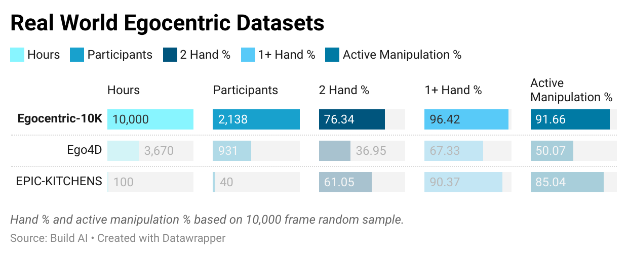 The Build team has released 10,000 hours of video data. 192,900 monocular wide-angle egocentric video clips, collected by human workers in a variety of different environments.